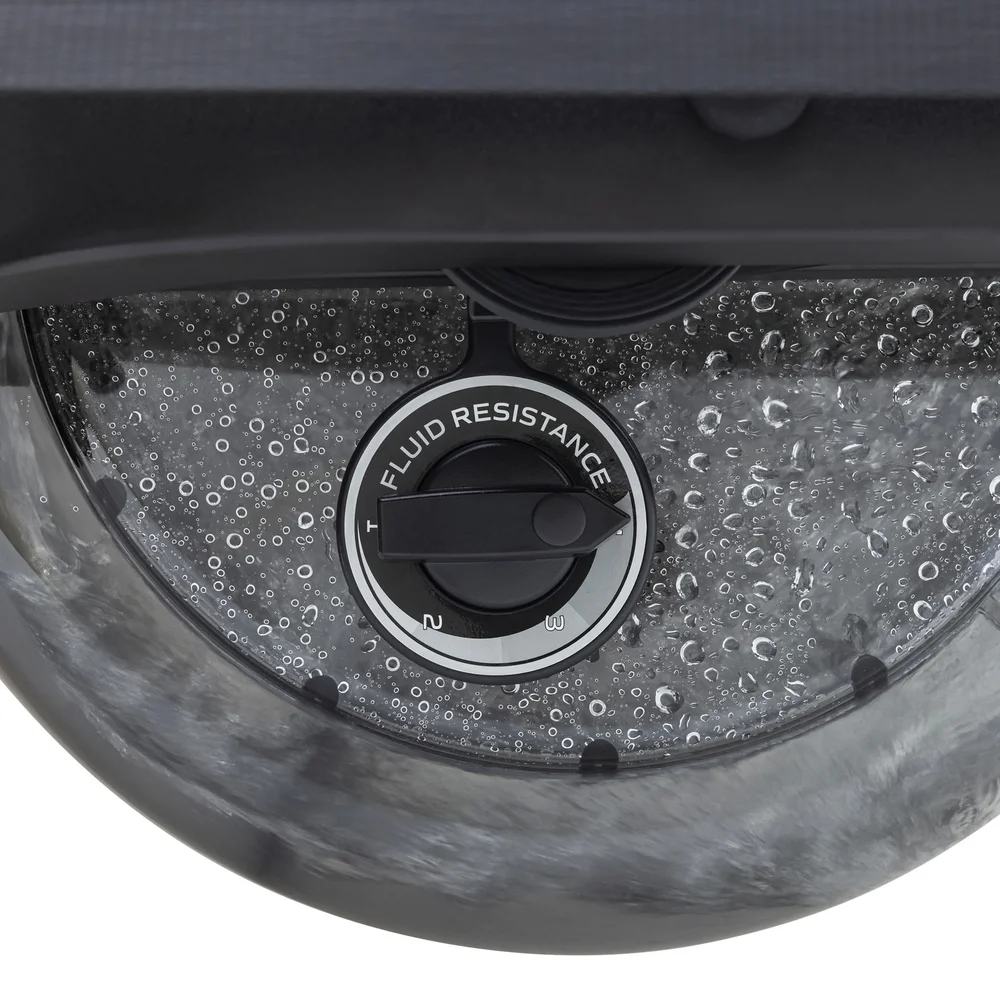 La résistance se règle via une molette positionnée à portée de main, sans avoir à modifier le niveau d’eau manuellement. Quatre niveaux sont disponibles, ce qui est largement suffisant en pratique pour couvrir aussi bien une séance de cardio légère qu’un entraînement plus intense.
