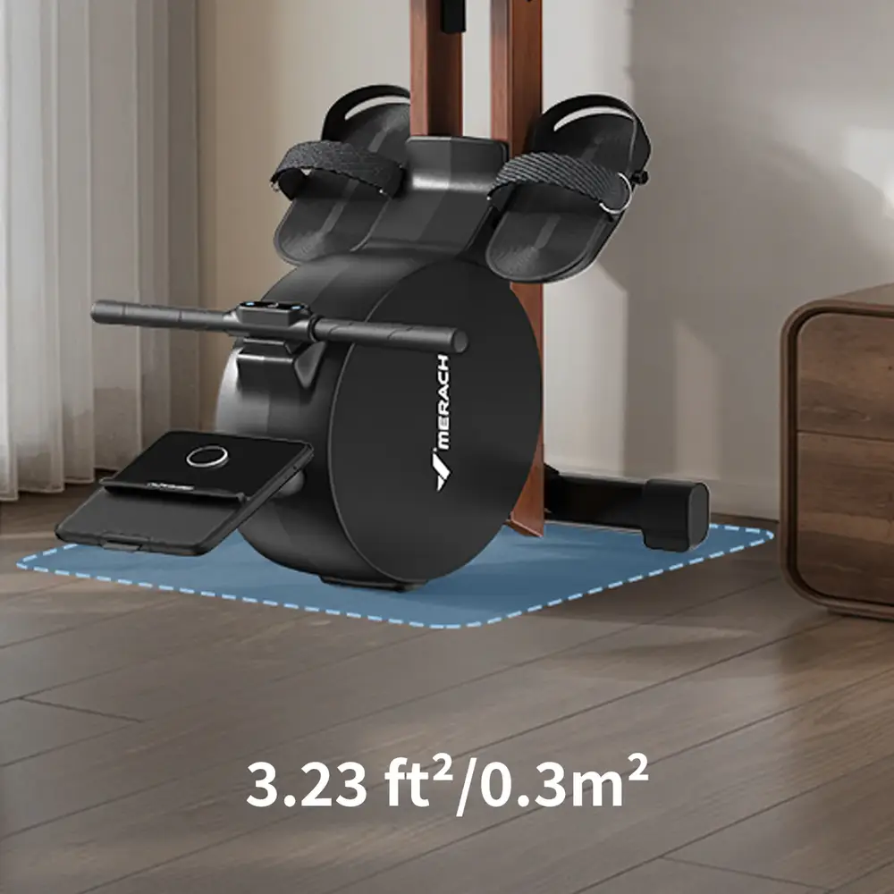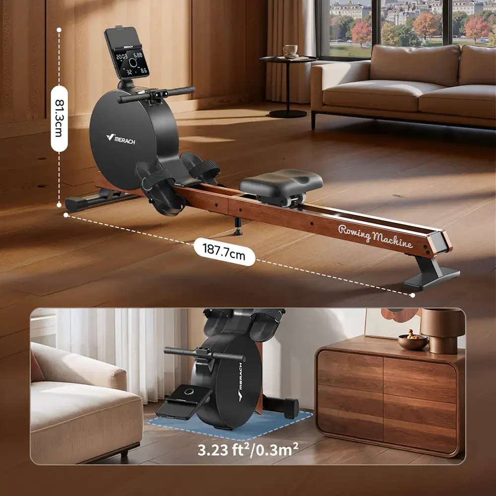 Le Merach Q3 s’adresse à ceux qui veulent un rameur compact et à forte identité visuelle, avec une gestion d’encombrement pensée pour les espaces réduits (stockage possible à la verticale ou à l’horizontale, même s’il n’est pas pliable).