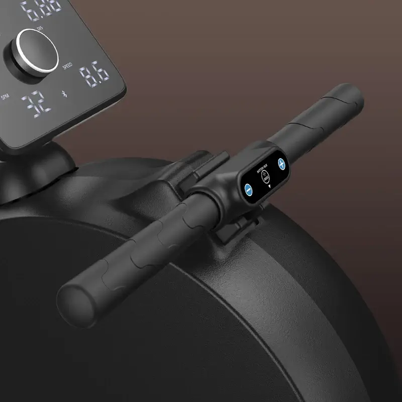 Le Q3 se démarque néanmoins par plusieurs points techniques et technologiques intéressants. Il intègre un système permettant de recharger un smartphone grâce à l’énergie produite par le coup de rame, une fonctionnalité originale et assez rare sur ce segment. Il est également connectable en Bluetooth, ce qui reste peu courant dans cette gamme de prix. Autre élément appréciable : le réglage de la résistance peut se faire depuis l’écran, mais aussi directement depuis la poignée, via de petits boutons pour augmenter ou diminuer l’intensité sans interrompre l’effort.