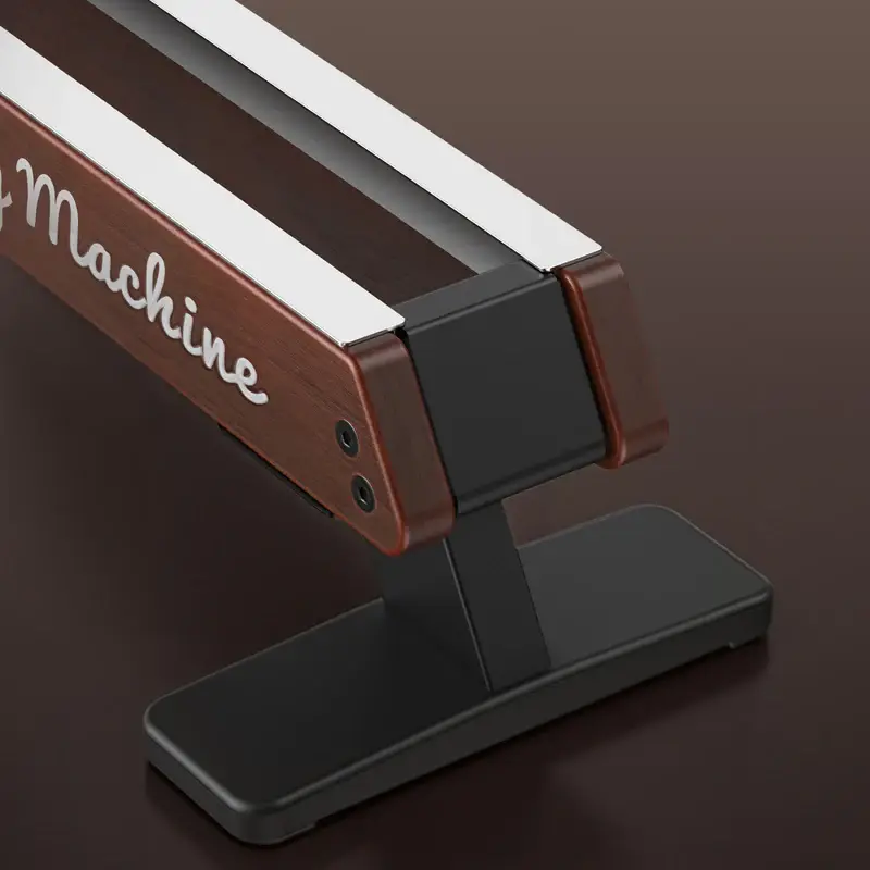 Le Merach Q3 fait clairement partie des rameurs les plus esthétiques et les plus compacts du marché dans la catégorie des modèles à moins de 600 €. Son design se distingue par un châssis en bois monté sur un double rail rapproché, qui lui donne une vraie identité visuelle tout en maintenant un encombrement très maîtrisé.